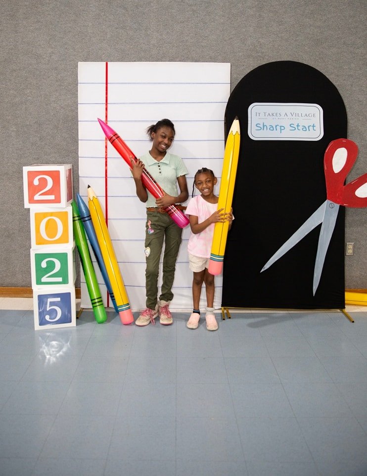The above photos were taken at our 2025 Sharp Start Event, a back-to-school initiative created to help local children and families prepare for a successful school year. During this event, students received hair cuts, essential school supplies, backpacks, and resources to ensure they were confident and ready for the classroom. Families also had the opportunity to connect with community support and learn about additional programs offered by It Takes A Village: SMP. Sharp Start reflects our commitment to easing financial burdens, promoting educational success, and empowering families with the tools they need to thrive.